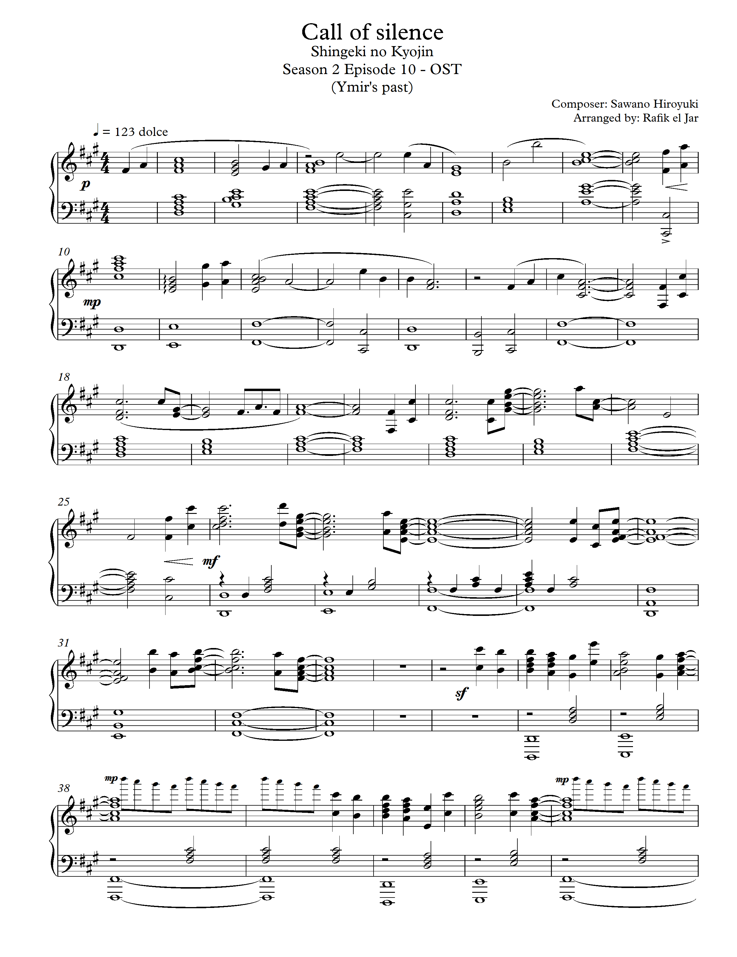 Call Of Silence Piano Sheet - The document provides details about a piano score titled 'call of silence' arranged by animenz from the anime attack on titan, composed by hiroyuki sawano. Bytutke, suitable for all students to learn. Get 'call of silence' for fre piano sheet music at.