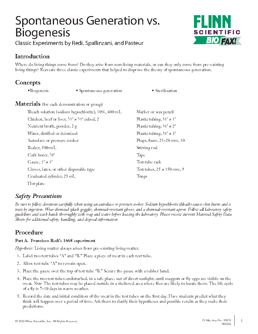 Spontaneous Generation vs. Biogenesis Flinn Scientific