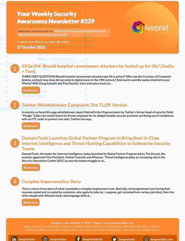 WEEKLY CYBERSECURITY NEWSLETTER NO 239 Labs