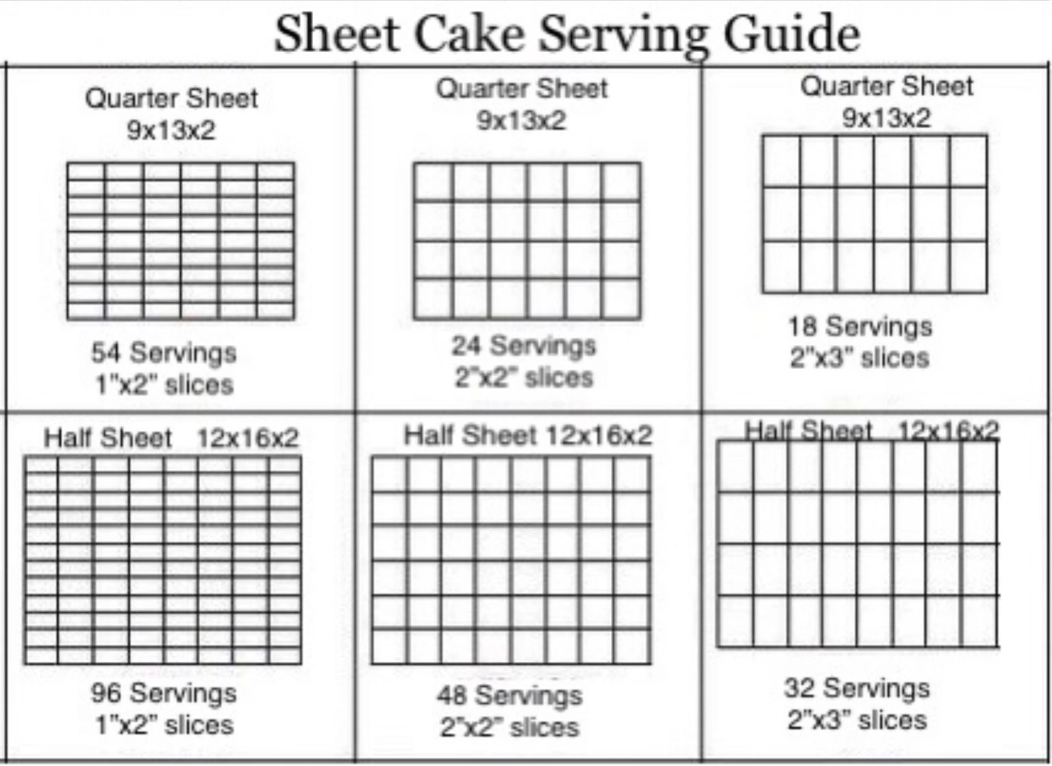 Sheet Cake Serving Sizes Cake servings, Half sheet cake, Cake serving