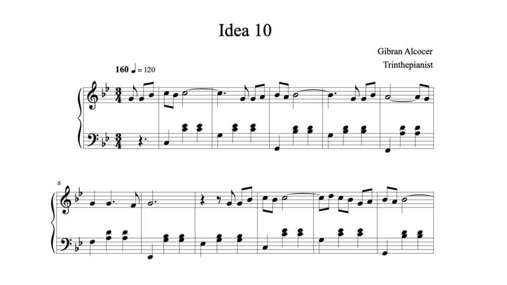 Use your computer keyboard to play idea 10 (gibran alcocer) music sheet on virtual piano. This is an intermediate song and requires a lot of practice to play well. Idea 10 is a piece of music by mexican artist gibran alcocer.