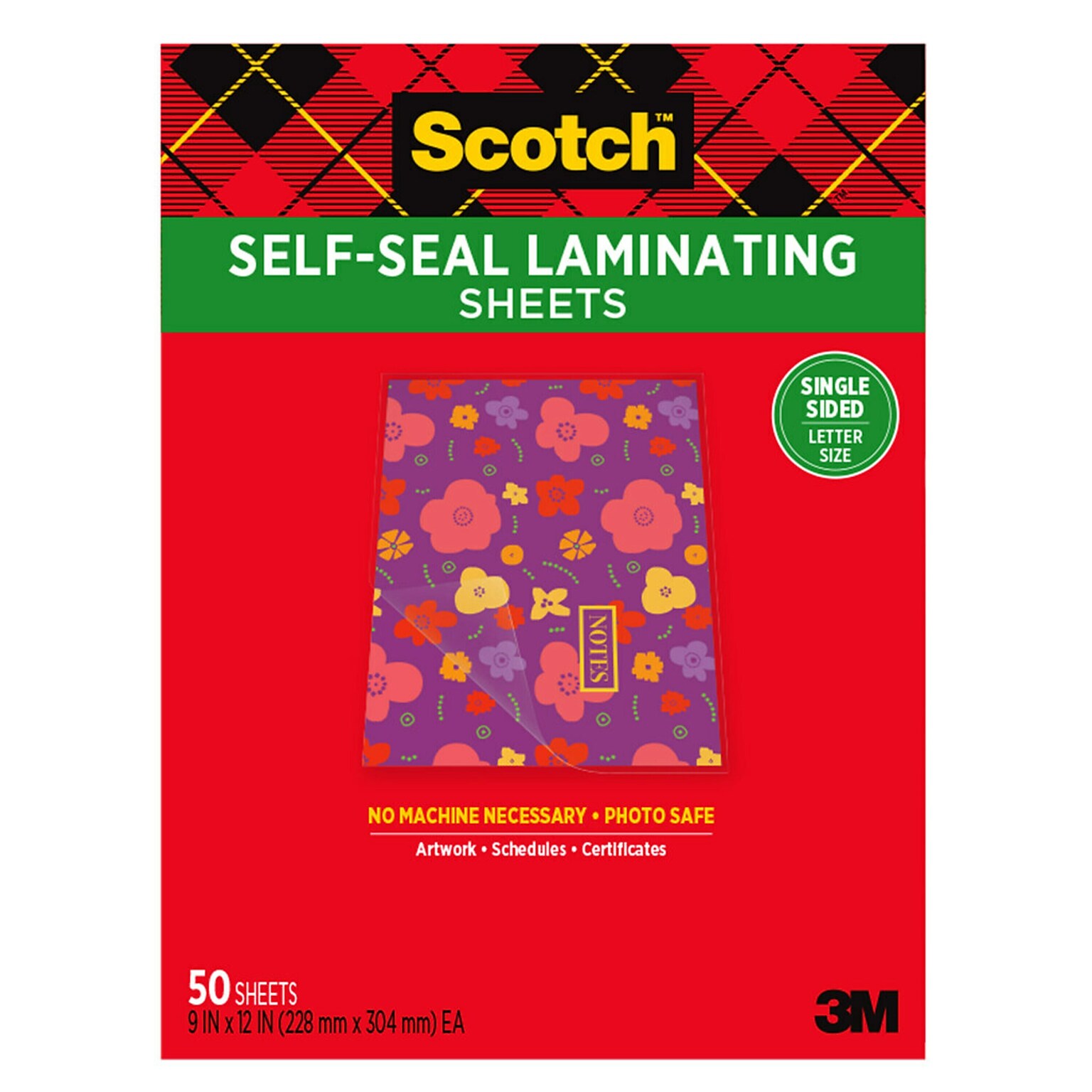 Scotch™ SelfSeal SingleSided Laminating Sheets, Letter, 50/Pack