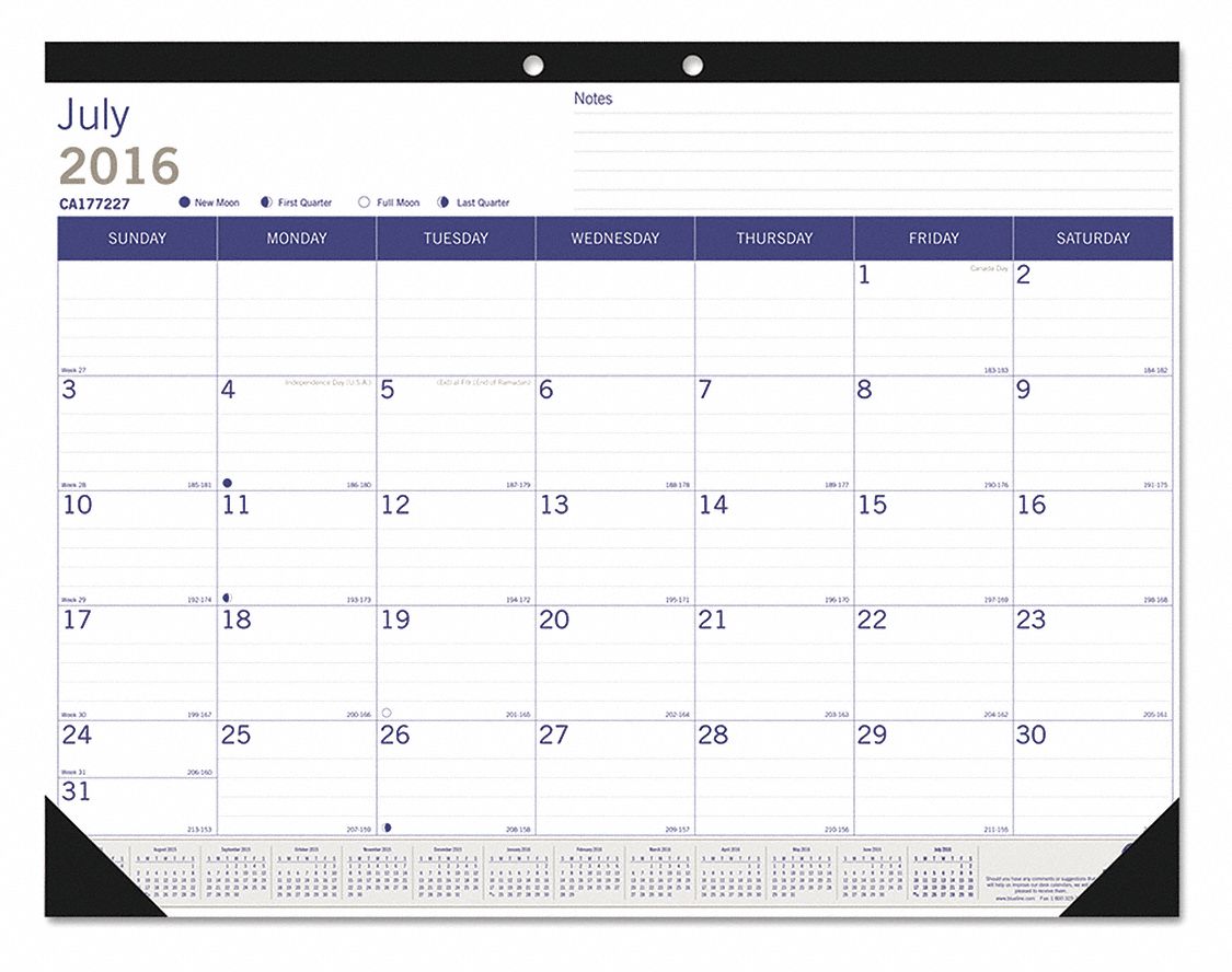 BLUELINE, 22 in x 17 in Sheet Size, White Monthly Desk Pad Calendar
