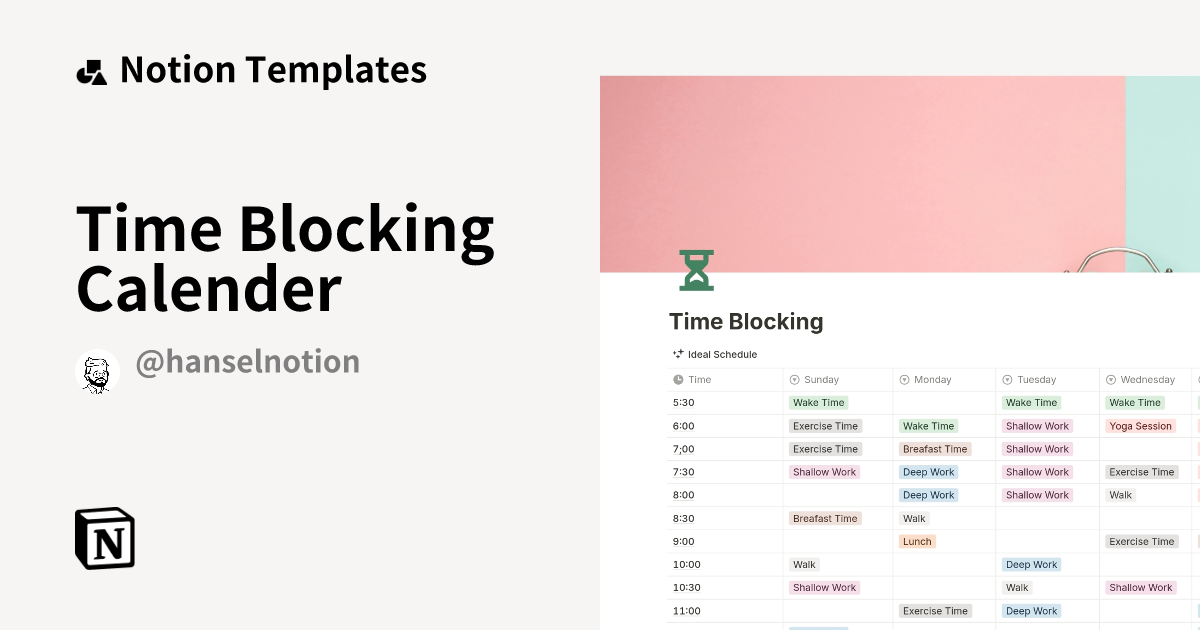 Time Blocking Calender Template by Hansel Systems Notion Marketplace