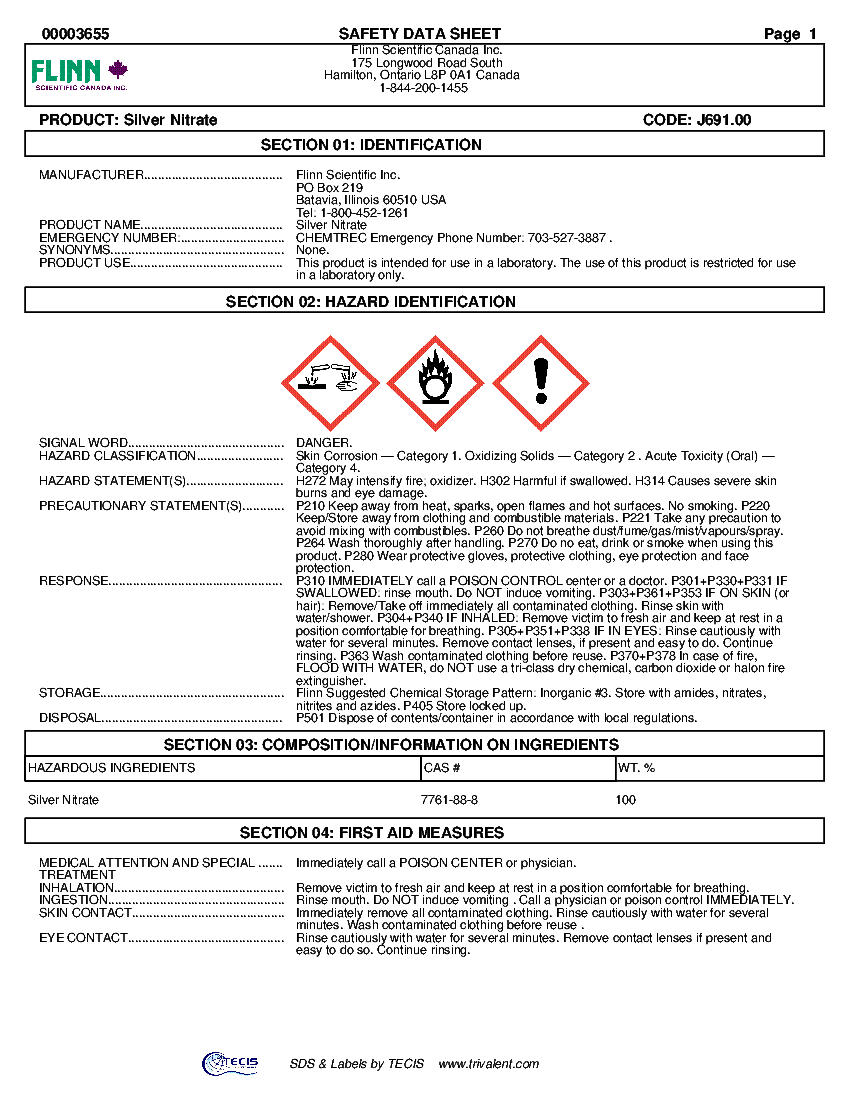 Safety data sheet according to 29cfr1910/1200 and ghs rev. Uses advised against food, drug,. Safety data sheet according to 29cfr1910/1200 and ghs rev. Product name silver nitrate solution (0.1n/certified) cat no. 01.31.2015 page 1 of 7 silver nitrate,0.1n created by global safety management, inc. T000721000 synonyms nitric acid, silver salt solution recommended use laboratory chemicals. Eye contact rinse immediately with plenty of water, also under the eyelids, for at least 15 minutes. 01.31.2015 page 1 of 7 silver nitrate,1.0n created by global safety management, inc.