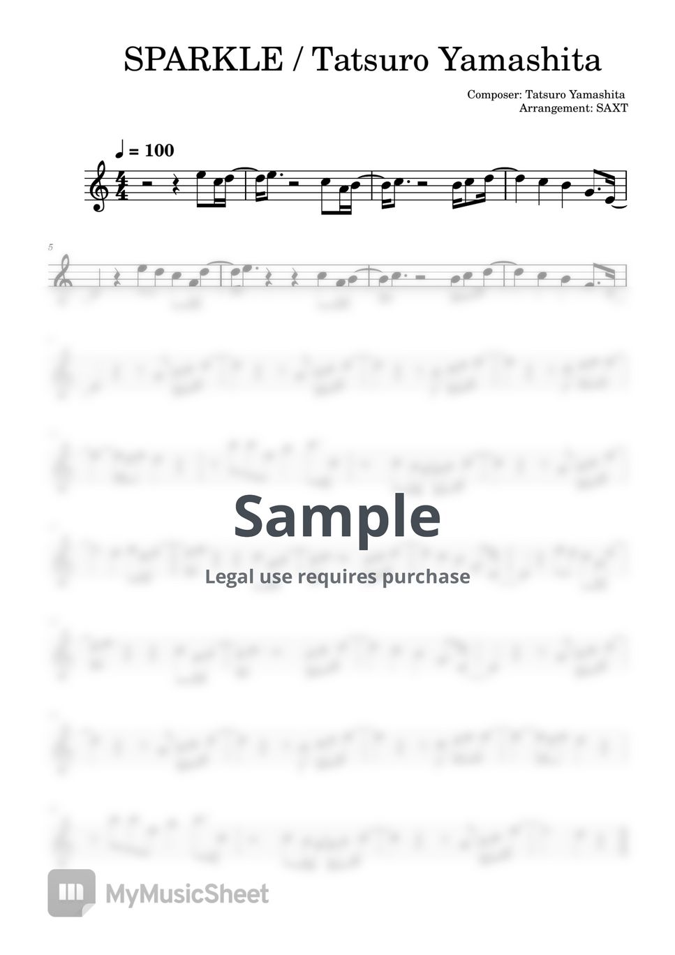 Tatsuro Yamashita SPARKLE (Easy sheet music) Sheets by SAXT